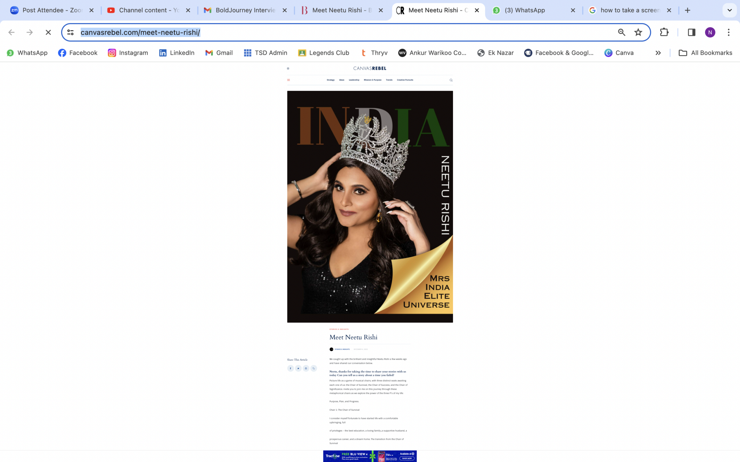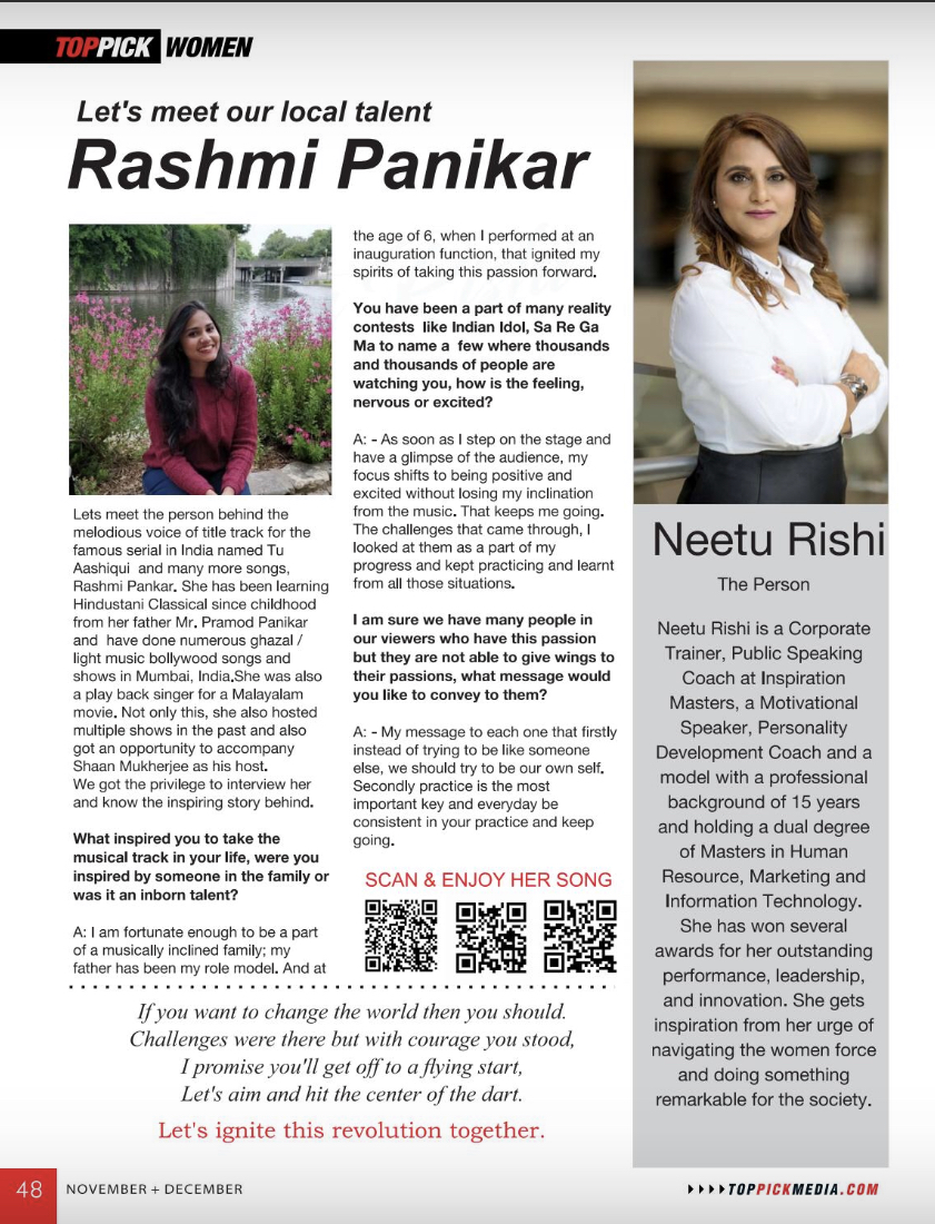 As the host of The Passionpreneur Talk Show and a sought-after keynote speaker, Neetu has inspired audiences worldwide, gracing platforms such as Harvard with her thought-provoking talks. A proud Dale Carnegie graduate and former Mrs. India Universe, she has been featured on notable media outlets including NTV Houston, Real News, and many more.