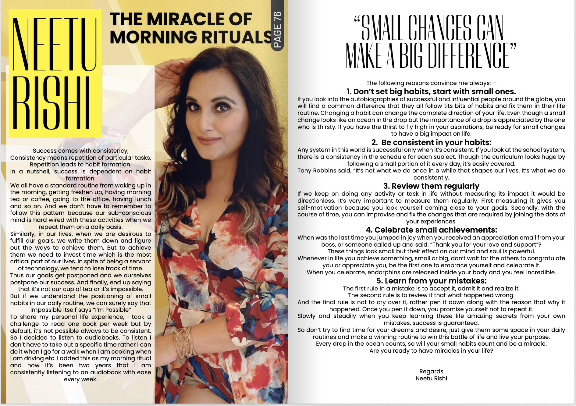 Beyond her professional achievements, Neetu is deeply committed to community development. She actively mentors youth, empowers aspiring entrepreneurs, and leads initiatives that nurture confidence, creativity, and self-love.