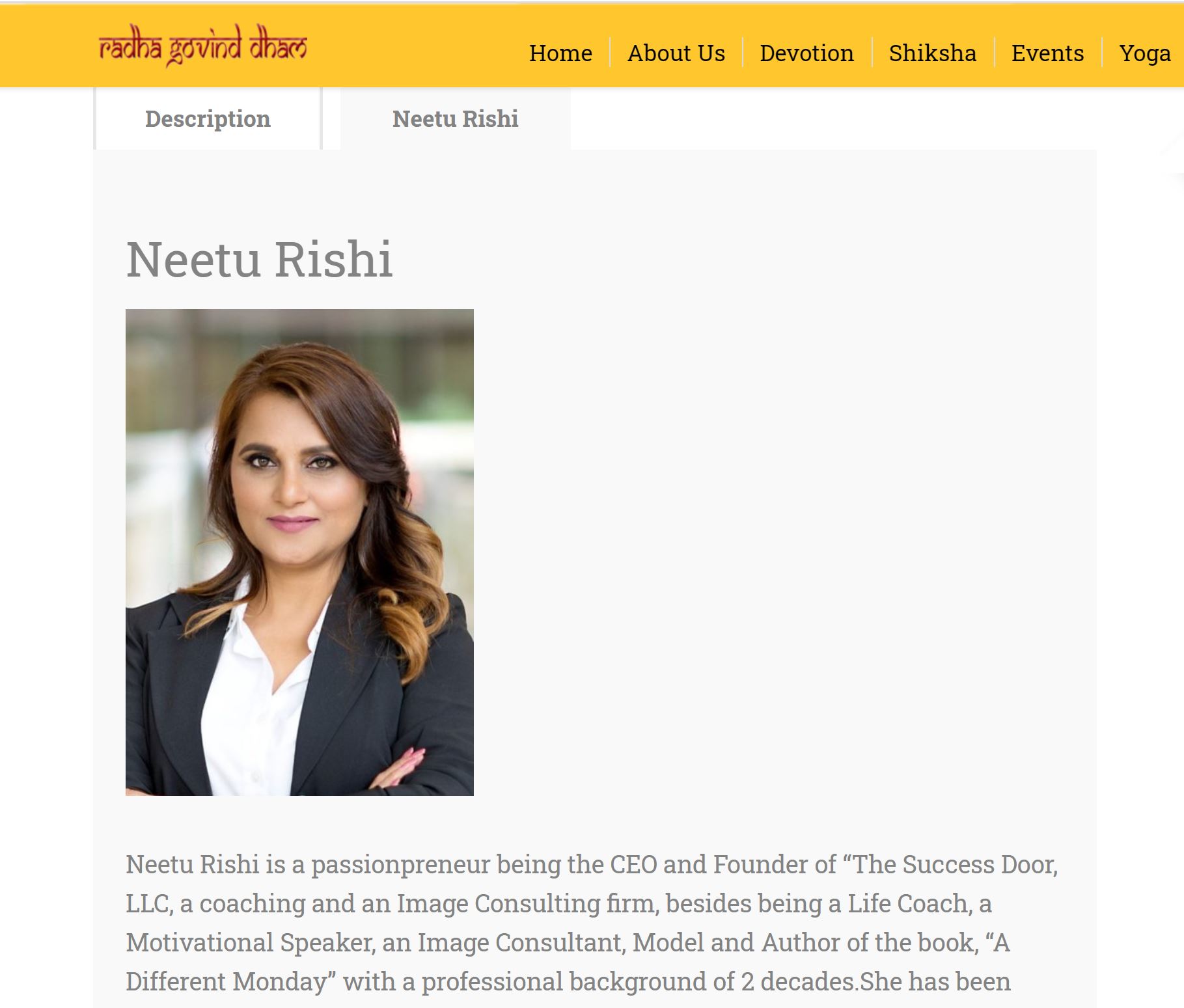 Official Bio of Ms. Neetu Rishi